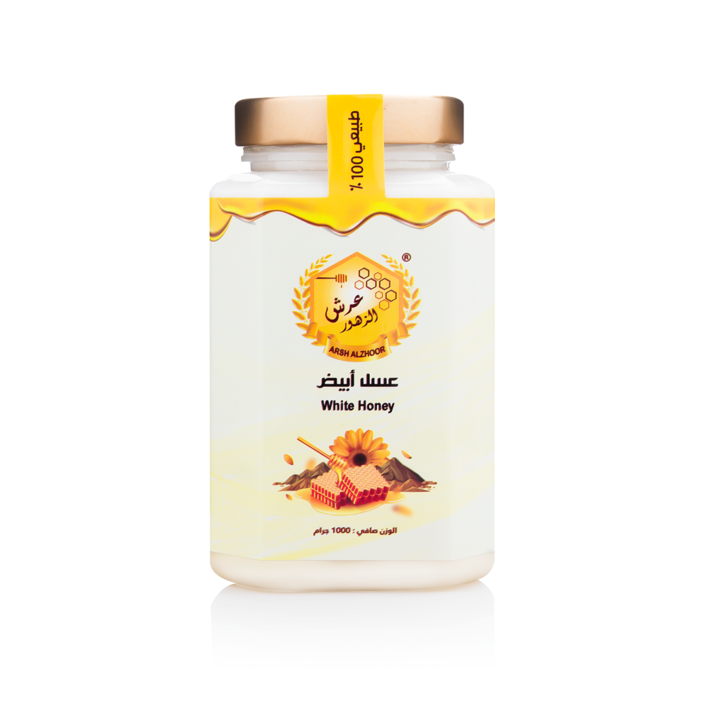 Al Majra Honey Original White Honey Throne of Flowers is a rare raw white honey , a very rich and pure natural honey characterized by its milky white color, light flavor, floral aroma and creamy texture. Original white honey is produced by bees when they feed only on the flowers of wild trees that bloom during the summer. We at Arsh Al-Zahour are keen to pack it in a completely automated way without it being touched by any human hand. Also, the original natural honey is subjected to laboratory analyses during all stages of packing to ensure its quality and degree of purity.
